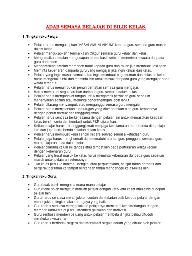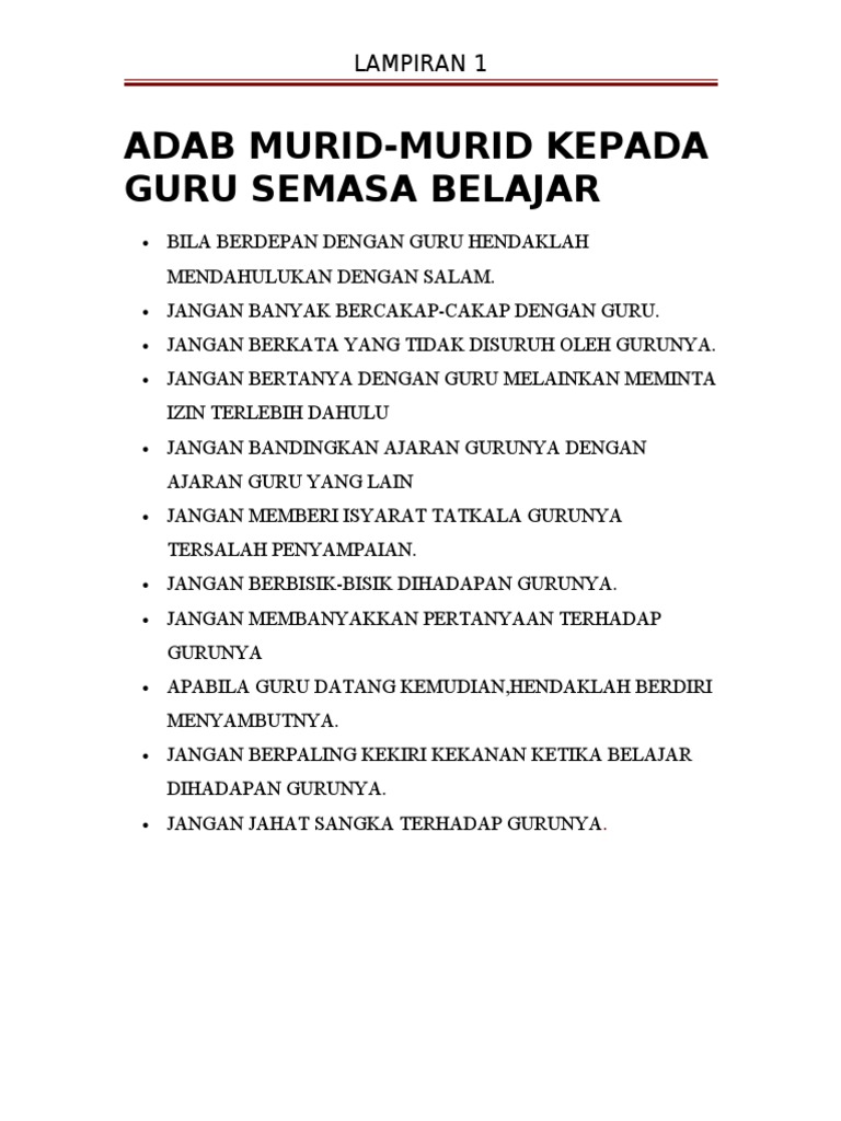 Pelajar yang menjaga tutur kata dan adab ketika berhadapan dengan guru merupakan antara cara kita. Hanya periksa semua1 PDFs dari pengarang ERIC TING. Menurut Syeikh Ahmad Nawawi adab seorang murid kepada gurunya adalah.