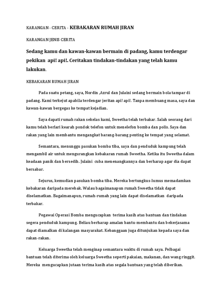 Pihak bomba mangambil masa satu setengah jam untuk memadamkan api. Karangan Jenis Cereka Pengalaman Keperihalan Gambaran Situasi Memerlukan kekuatan imaginasi dan. Tanpa berlengah bapaku terus pergi meminta pertolongan penduduk kampung.